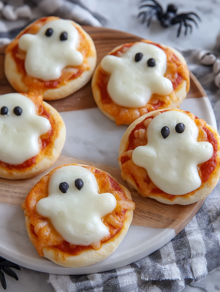 These Adorable Mini Ghost Pizzas are the perfect spooky snack for Halloween! With their cute ghost-shaped mozzarella topping and fun mini size, they’re guaranteed to be a hit at any party or family dinner. Plus, they’re super simple to make, which means even the kids can help out in the kitchen.