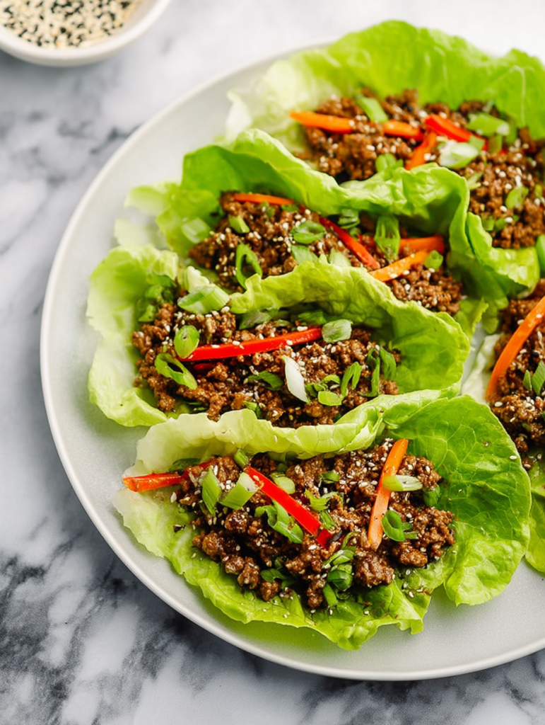 Packed with flavor, color, and texture, these Asian-Style Ground Beef Lettuce Wraps are a delicious and healthy alternative to traditional wraps. With a savory-sweet beef filling, crisp lettuce cups, and a sprinkle of sesame seeds, they deliver on both taste and presentation. This quick dish is perfect for busy weeknights when you want something nourishing yet satisfying.