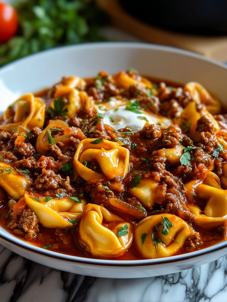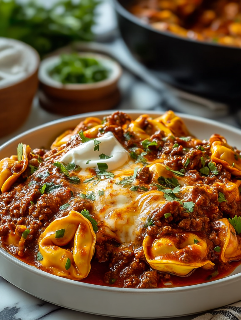 Combining classic Tex-Mex flavors with the richness of Italian tortellini, this fusion dish is perfect for weeknight dinners or casual gatherings. The creamy cheese, seasoned beef, and saucy enchilada blend create an irresistibly cozy meal that the whole family will love.