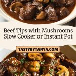 Keywords: beef tips, mushrooms, slow cooker dinner, Instant Pot beef, easy dinner recipe