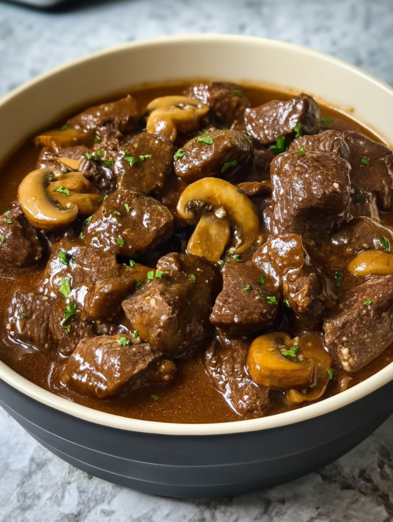 Tender, juicy chunks of beef simmered in a rich, savory mushroom gravy—this comforting dish is everything you want in a hearty, home-cooked meal. Whether you’re using a slow cooker for that low-and-slow magic or an Instant Pot for a quicker approach, this recipe delivers deep flavor with minimal effort.