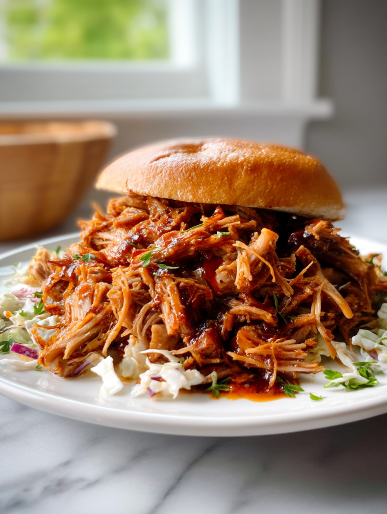 Keywords: pulled pork, slow cooker, BBQ, easy dinner, sandwich, comfort food