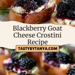 Keywords: easy appetizer, blackberry crostini, goat cheese crostini, party food ideas, elegant bites