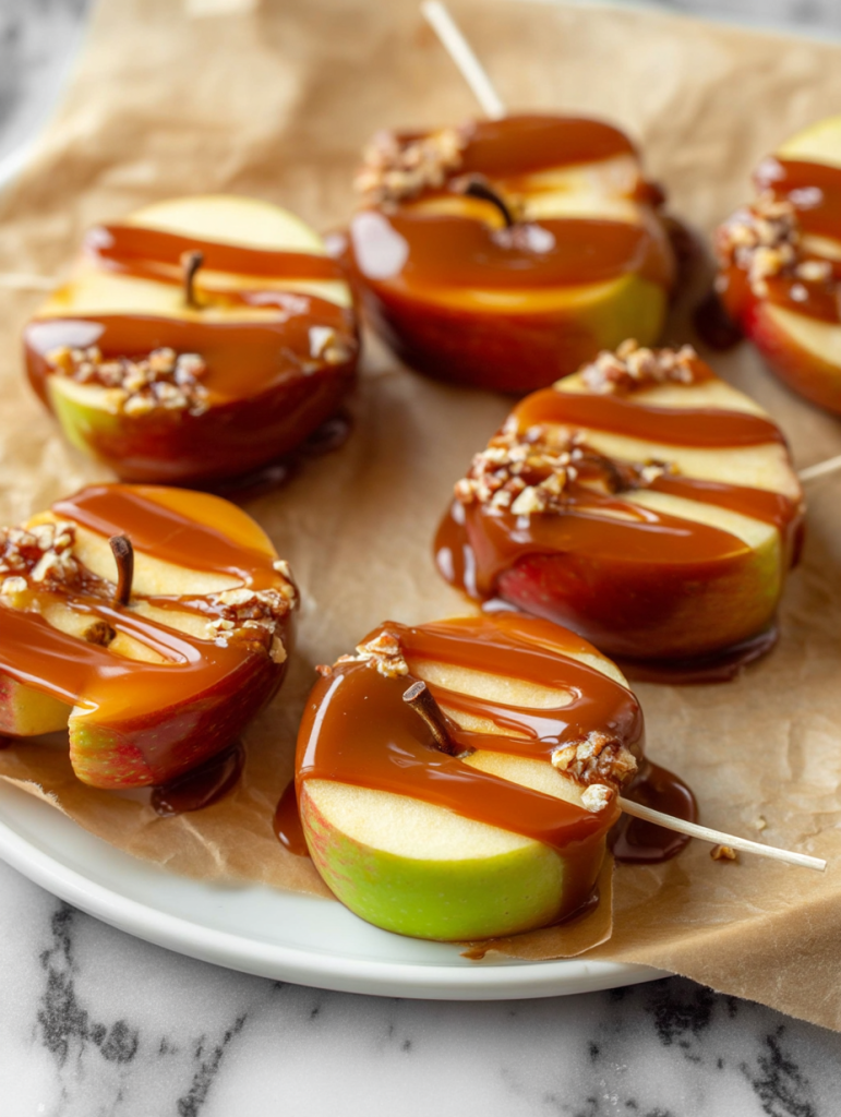 Keywords: easy dessert, caramel apples, apple snacks, fall recipes, kid-friendly treat, Halloween ideas, quick sweets