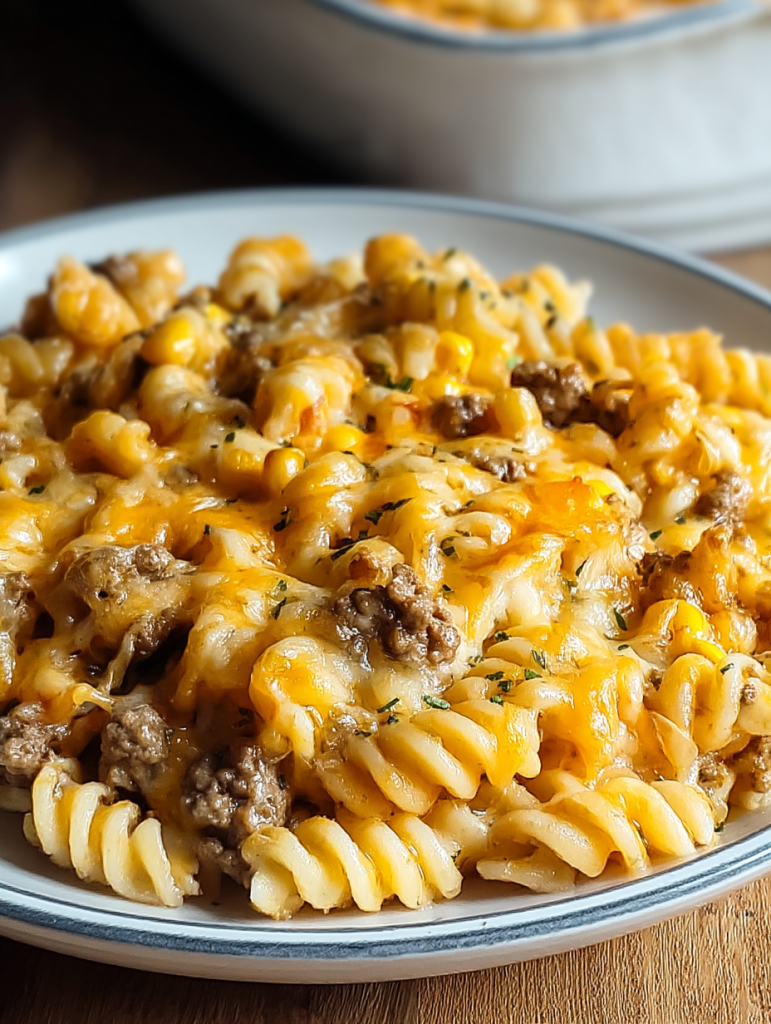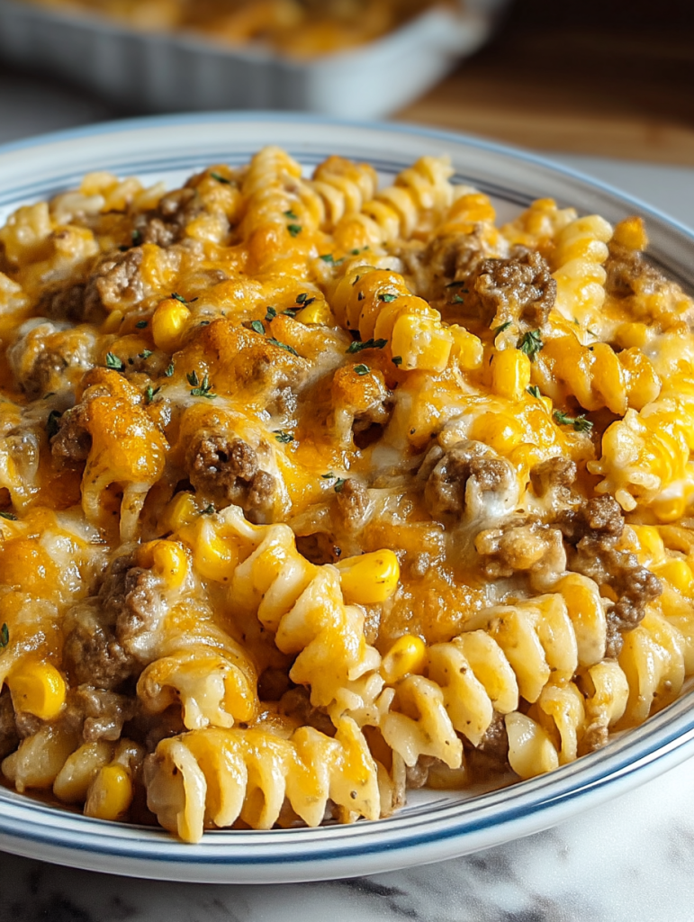 This Cheesy Beef and Sweet Corn Rotini Bake is the ultimate comfort food—rich, hearty, and smothered in melty cheddar cheese. Imagine tender rotini pasta tossed with juicy ground beef and sweet golden corn, then baked to perfection under a blanket of bubbling cheese. It’s the kind of dish that brings everyone to the table with smiles and full plates.