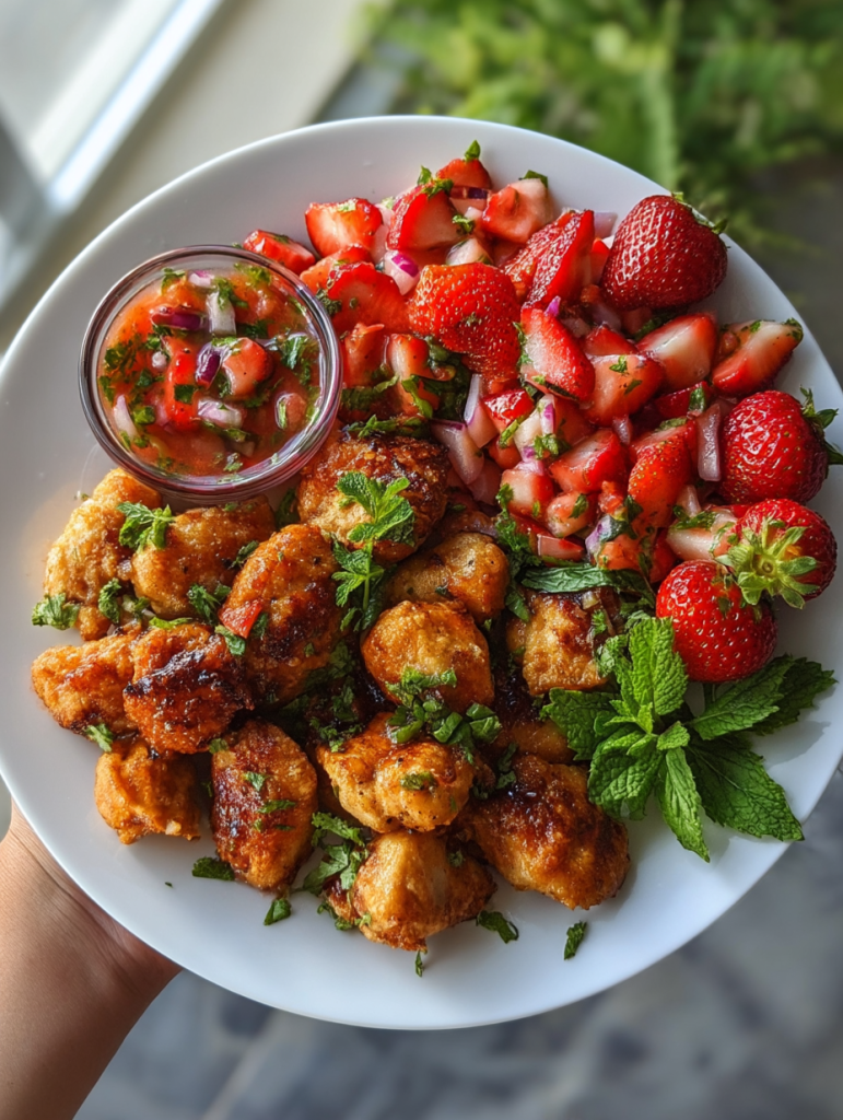 Chicken Bites with Strawberry-Jalapeño Mint Salsa Bowl