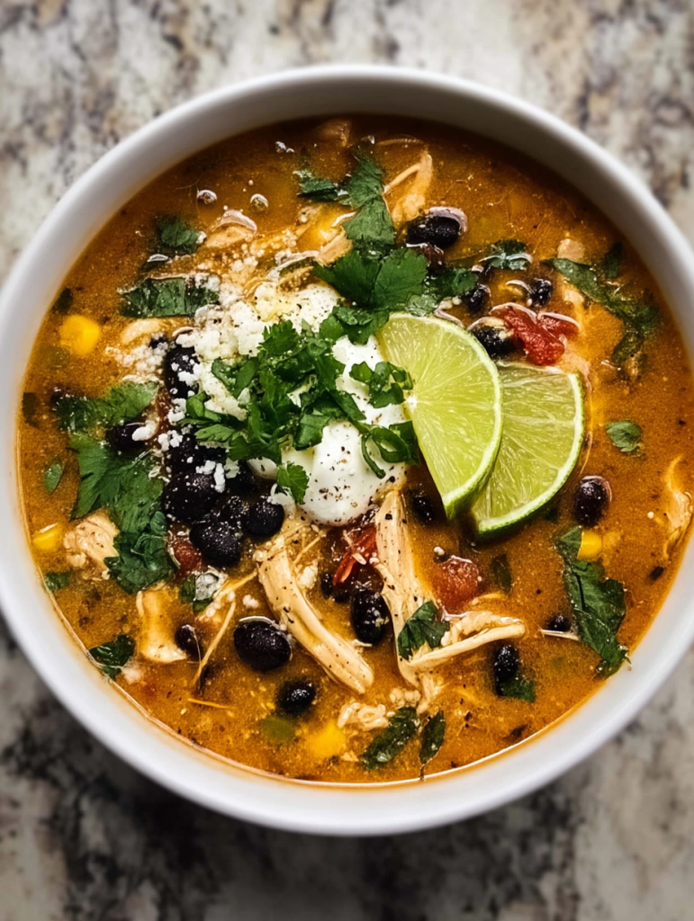 Creamy, comforting, and packed with flavor, Chicken Poblano & Black Bean Soup is the kind of meal that feels like a hug in a bowl. This heartwarming dish combines smoky roasted poblano peppers, tender shredded chicken, rich black beans, and a medley of Tex-Mex spices. It’s topped off with fresh lime, cheddar cheese, and cilantro for the perfect finishing touch.