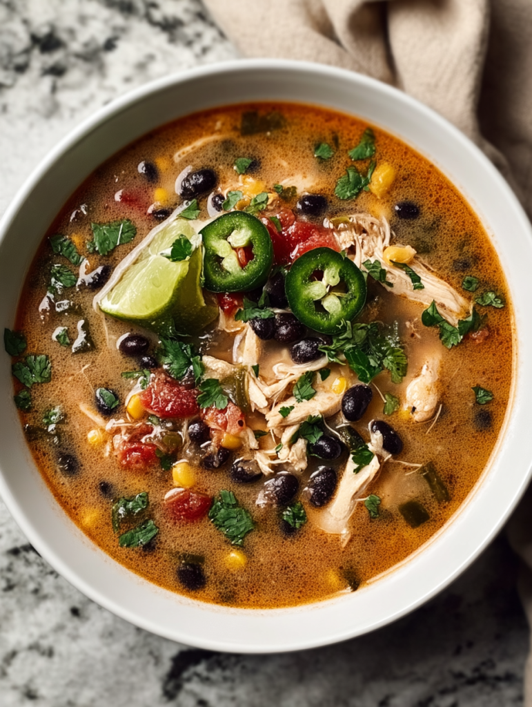 - Protein-packed: Chicken and black beans make this soup hearty and satisfying.