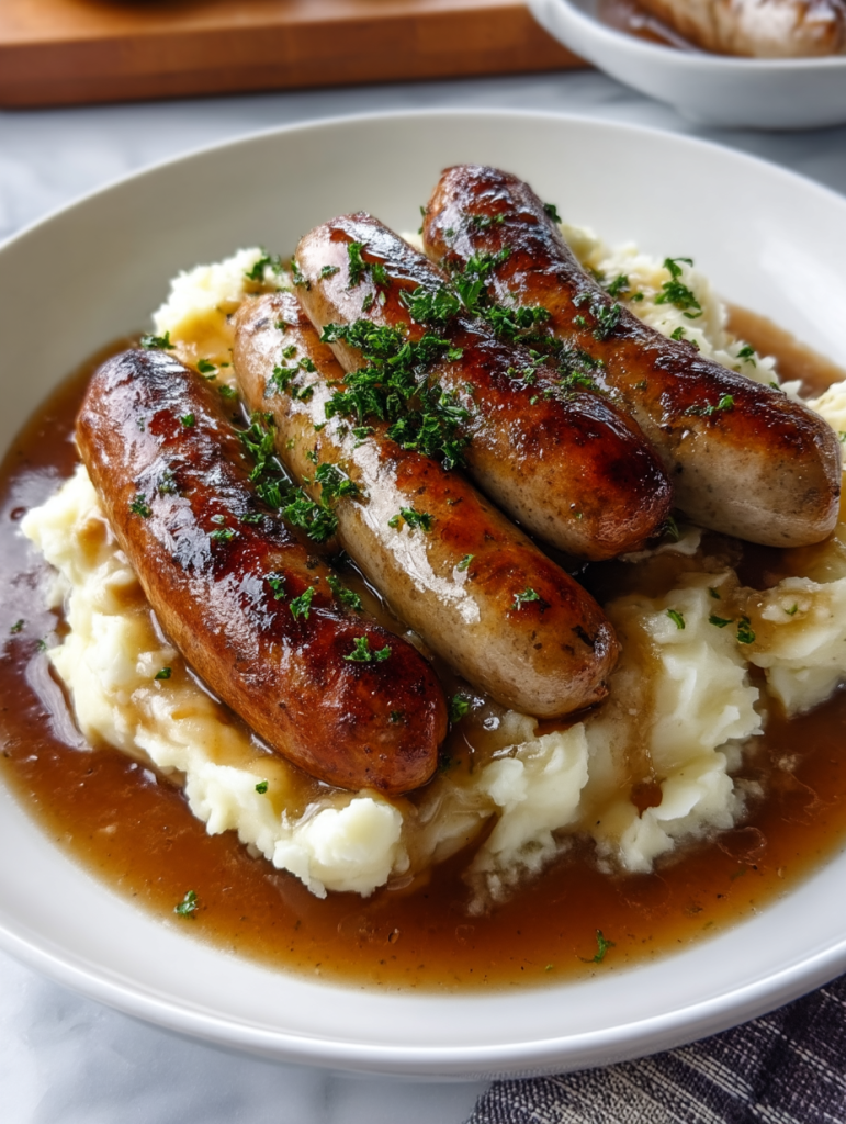 What makes this meal truly special is its simplicity. With just a few humble ingredients and straightforward steps, you can bring a pub-style classic into your kitchen. Whether you’re feeding the family or hosting a casual dinner with friends, Bangers and Mash is always a satisfying crowd-pleaser.