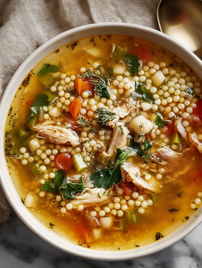 Comfort in a Bowl: Chicken & Pearl Couscous Soup