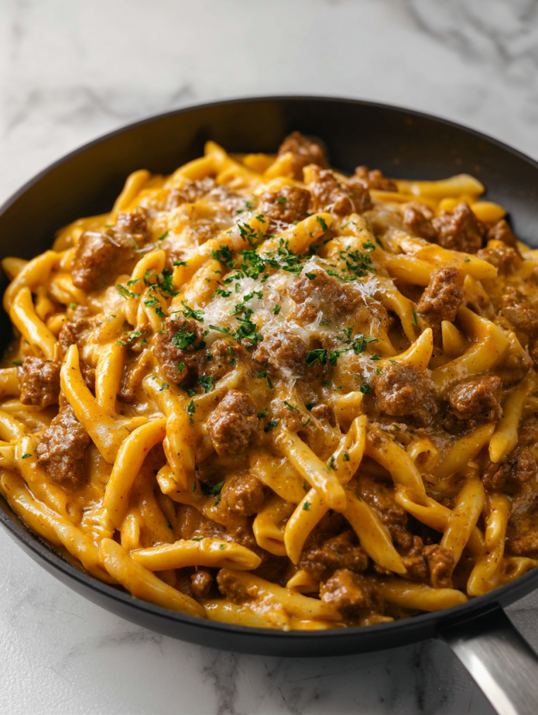 This dish is perfect for when you want big flavor without a pile of dishes to wash. The combination of garlic butter and seasoned beef offers deep, savory notes, while the creamy sauce turns each bite into pure comfort.