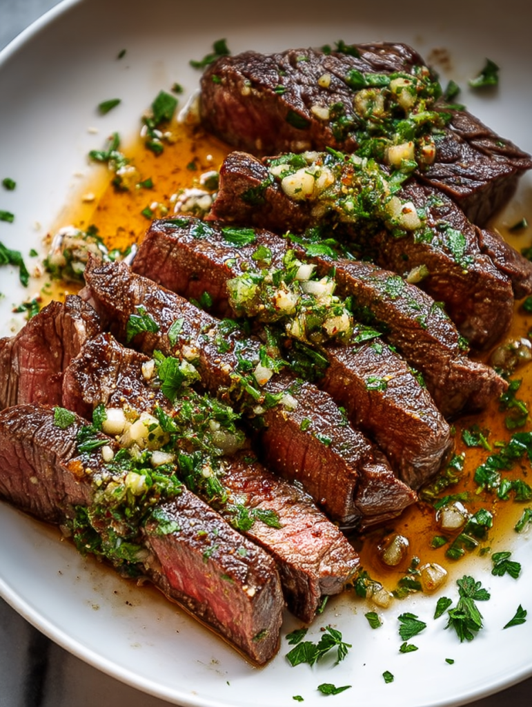A zesty herb sauce that balances the steak’s richness with acidity and freshness.