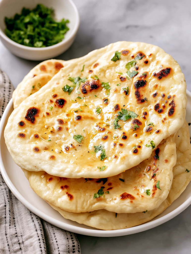 Soft, buttery, and bursting with flavor, Garlic Naan is a warm and pillowy flatbread that’s perfect for scooping up your favorite curries, soups, or stews. Brushed with garlic-infused butter and scattered with fresh herbs, this homemade naan will make you skip the store-bought kind for good.