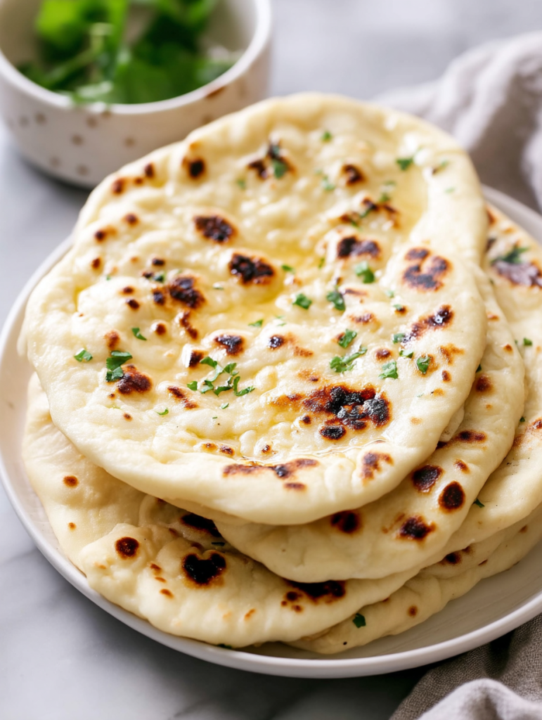 - Plain Yogurt – Adds tanginess and softness to the naan.