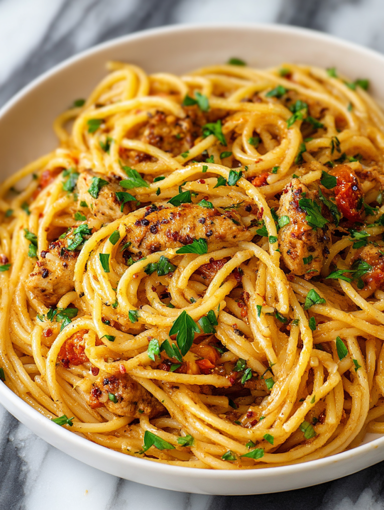 The magic is in the sauce—infused with garlic, cream, and roasted tomatoes, it clings to each strand of spaghetti like a warm hug. Whether you’re feeding a hungry family or preparing for a cozy dinner, this recipe will hit the spot every single time.