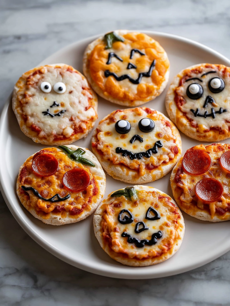 Keywords: Halloween recipes, mini pizza, kids food ideas, spooky snacks