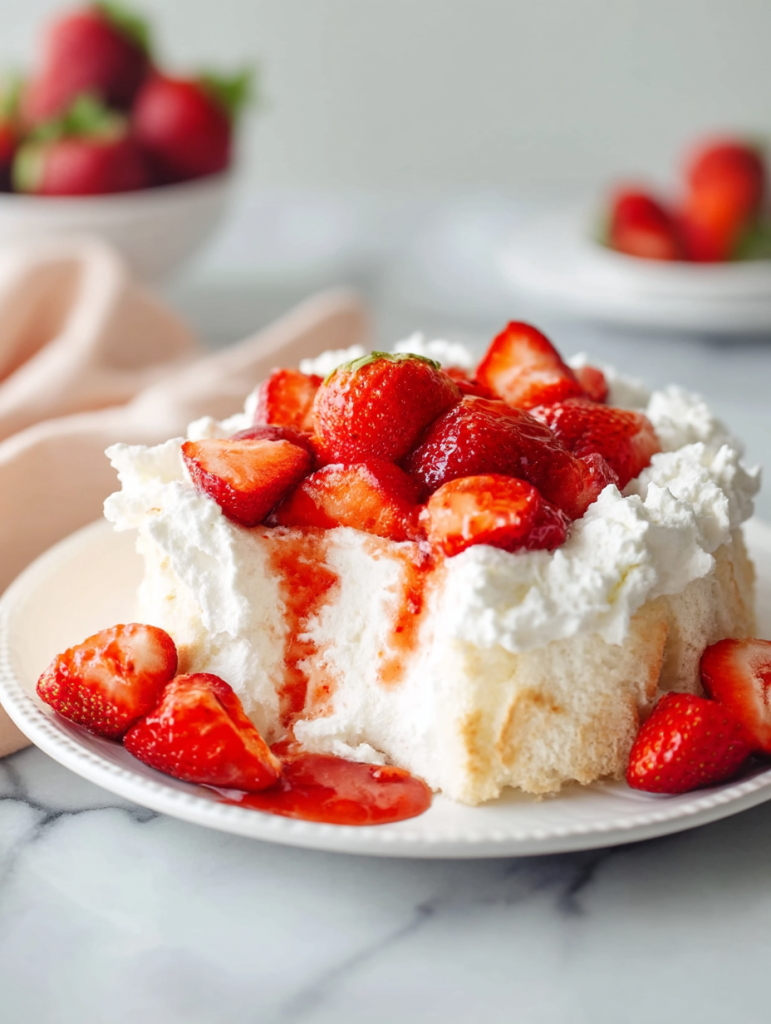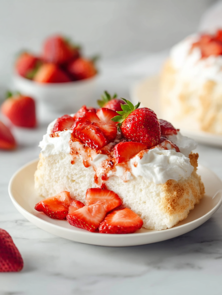 Light Angel Food Cake with Juicy Strawberries