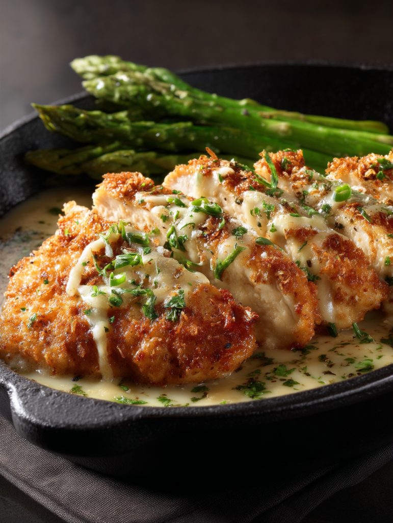 This Parmesan-crusted chicken comes together with pantry staples and a few simple steps. The key is the rich coating of Parmesan cheese and breadcrumbs that crisps up beautifully in the oven or air fryer. Whether you’re hosting a dinner party or looking for a weeknight winner, this dish delivers big flavor with very little fuss.
