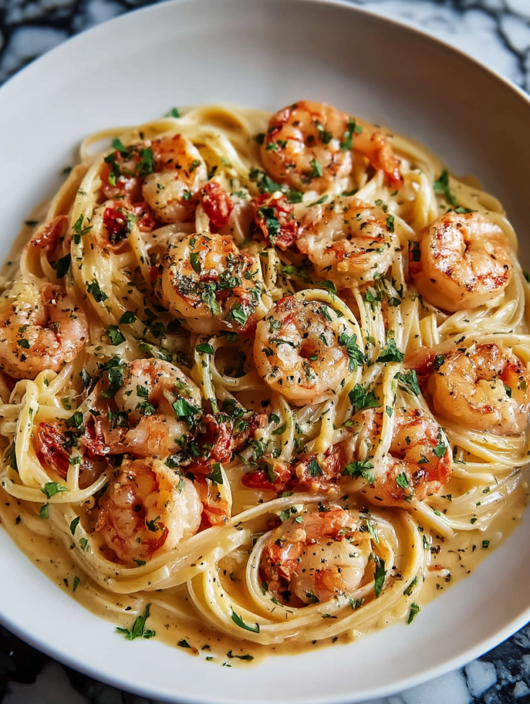 Fettuccine is the classic pick for this dish because it holds the sauce so beautifully, giving you that creamy bite in every forkful. But feel free to get creative—linguine, spaghetti, or even penne can all work well. If you’re after a lighter version, try zucchini noodles or gluten-free pasta. The real star here is the sauce and shrimp, so any pasta that grabs onto that creamy goodness will do the trick!