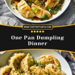 Keywords: one pan dinner, dumplings, quick dinner, easy dinner, food ideas