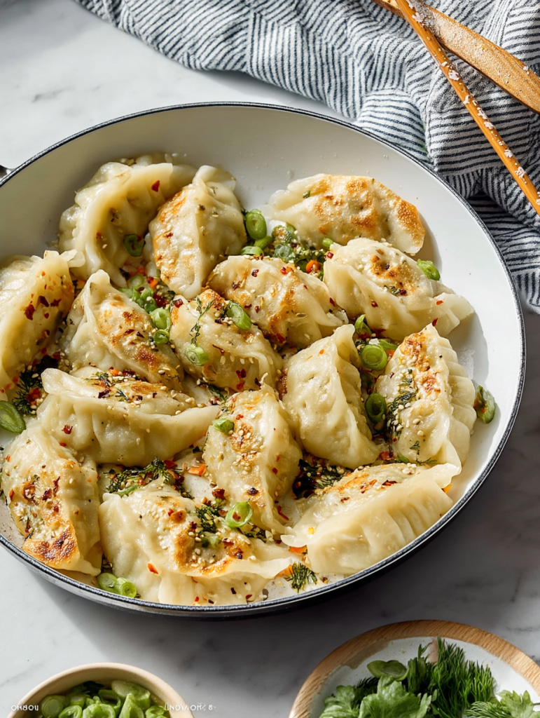 Perfectly pan-fried and then gently steamed in a savory broth, these dumplings are packed with juicy fillings and topped with a sesame-garlic drizzle that ties everything together. Whether you’re looking for a fun dish to share with family or a quick way to impress guests, this recipe delivers maximum flavor with minimal fuss.
