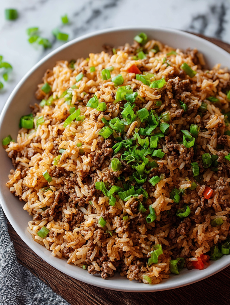 Savory, hearty, and bursting with the flavors of the South, Dirty Rice with Ground Beef is the kind of comfort food that brings everyone to the table. This one-pan dish is packed with bold Cajun seasoning, sautéed veggies, and juicy ground beef, all tossed together with fluffy rice for a simple yet satisfying meal.