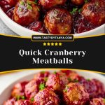 If you’re searching for the perfect quick appetizer or an easy dinner recipe that will impress everyone at the table, look no further than these Quick Cranberry Meatballs. Juicy and flavorful meatballs are simmered in a luscious sweet-and-savory cranberry sauce, making this a go-to for holiday parties, weeknight meals, or casual entertaining. Packed with crowd-pleasing flavor and made with simple ingredients, it’s a must-try for fans of easy recipes, party food ideas, and festive comfort food. Great for busy nights, potlucks, or anyone craving something cozy and delicious.