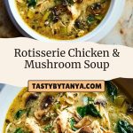 Keywords: easy dinner, rotisserie chicken soup, mushroom soup, creamy soup, quick dinner, comfort food, healthy soup, food ideas