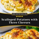 Get ready to wow your tastebuds with this rich, creamy, and golden-baked Scalloped Potatoes with Three Cheeses! Perfect for holidays, cozy dinners, or whenever you’re craving something hearty and indulgent, this easy recipe layers tender potatoes in a luscious garlic cheese sauce using cheddar, Gruyère, and mozzarella. It’s the ultimate comfort food that brings everyone back for seconds. Whether you’re searching for easy dinner ideas, quick comfort food, or a side dish that steals the show, this crowd-pleaser belongs on your table. Ideal for family meals, potluck dishes, or simply satisfying your love of cheese and potatoes!