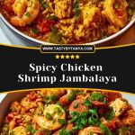 Get ready to turn up the heat and flavor with this bold and satisfying Spicy Chicken Shrimp Jambalaya! Packed with juicy shrimp, tender chunks of chicken, smoky sausage, and perfectly seasoned rice, this one-pot wonder is your ticket to a dinner that impresses without stress. With colorful peppers, rich tomato undertones, and a gentle heat that lingers, every spoonful delivers a taste of the South right to your kitchen.