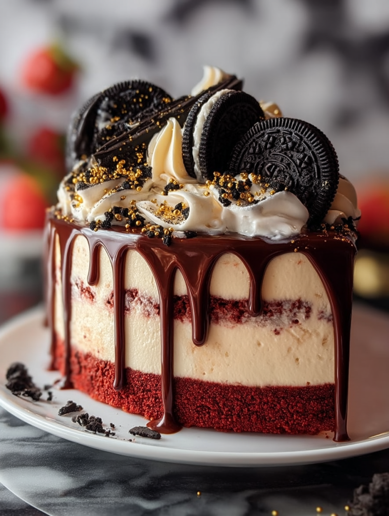 Keywords: cheesecake, red velvet, Oreo dessert, easy recipe, drip cake