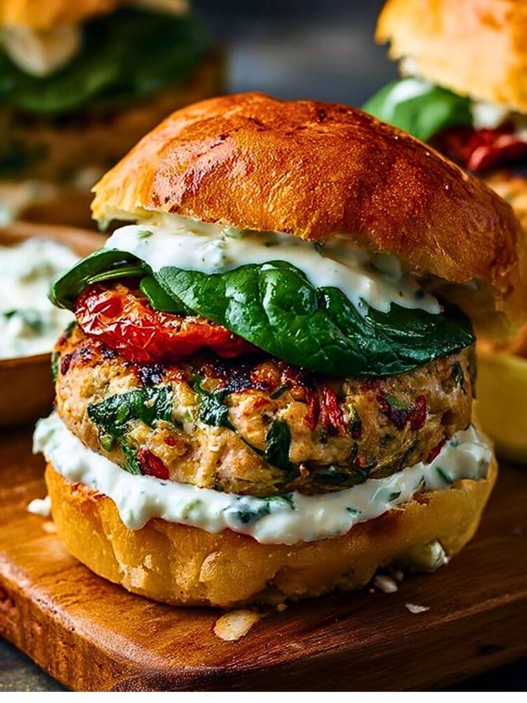 Juicy, savory, and bursting with Mediterranean flavor — these Sun-Dried Tomato and Feta Spinach Burgers with Tzatziki Sauce are anything but ordinary. They’re loaded with fresh herbs, tender spinach, tangy sun-dried tomatoes, and creamy feta cheese, creating a beautifully moist burger that’s as nourishing as it is delicious. Whether you’re trying to switch up your usual burger night or looking for a healthier yet indulgent meal, this recipe checks all the boxes.