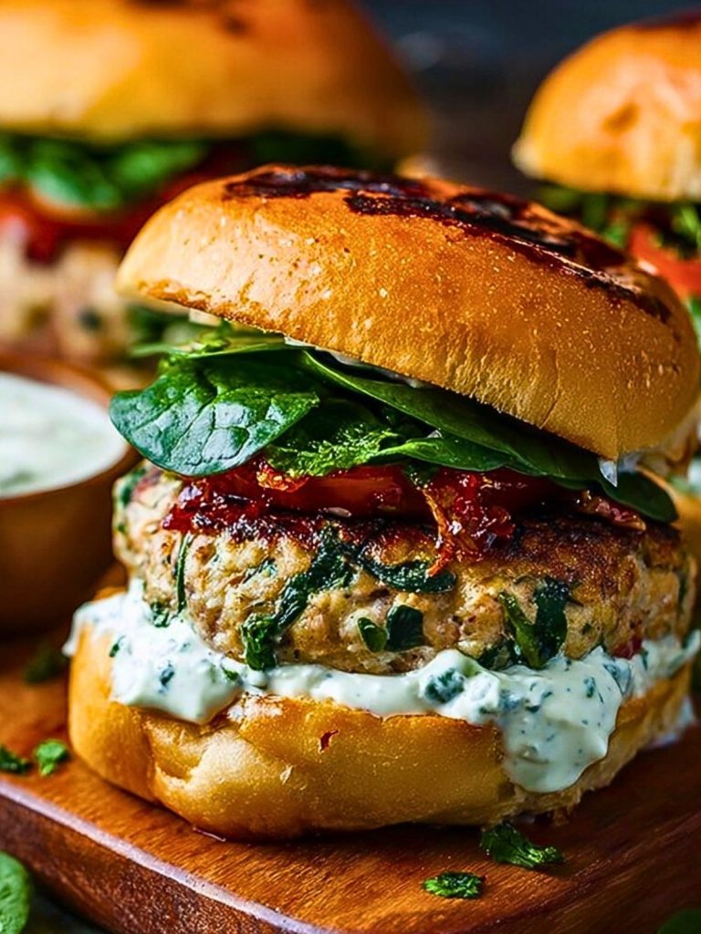 Looking to bring bold Mediterranean flavors to your burger game? These Sun-Dried Tomato and Feta Spinach Burgers with Tzatziki Sauce are your answer. Juicy, protein-packed, and layered with sun-dried tomatoes, sautéed spinach, creamy feta, and fresh herbs — they’re as satisfying as they are nutritious. Served on a toasted bun and topped with cool, garlicky tzatziki, this easy dinner idea is a delicious twist on classic burgers. Whether you’re looking for quick lunch recipes, healthy snack options, or unique dinner ideas, this flavorful, family-approved dish fits the bill. Perfect for meal prep or grilling season!