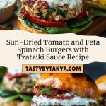 Sun-Dried Tomato and Feta Spinach Burgers with Tzatziki Sauce